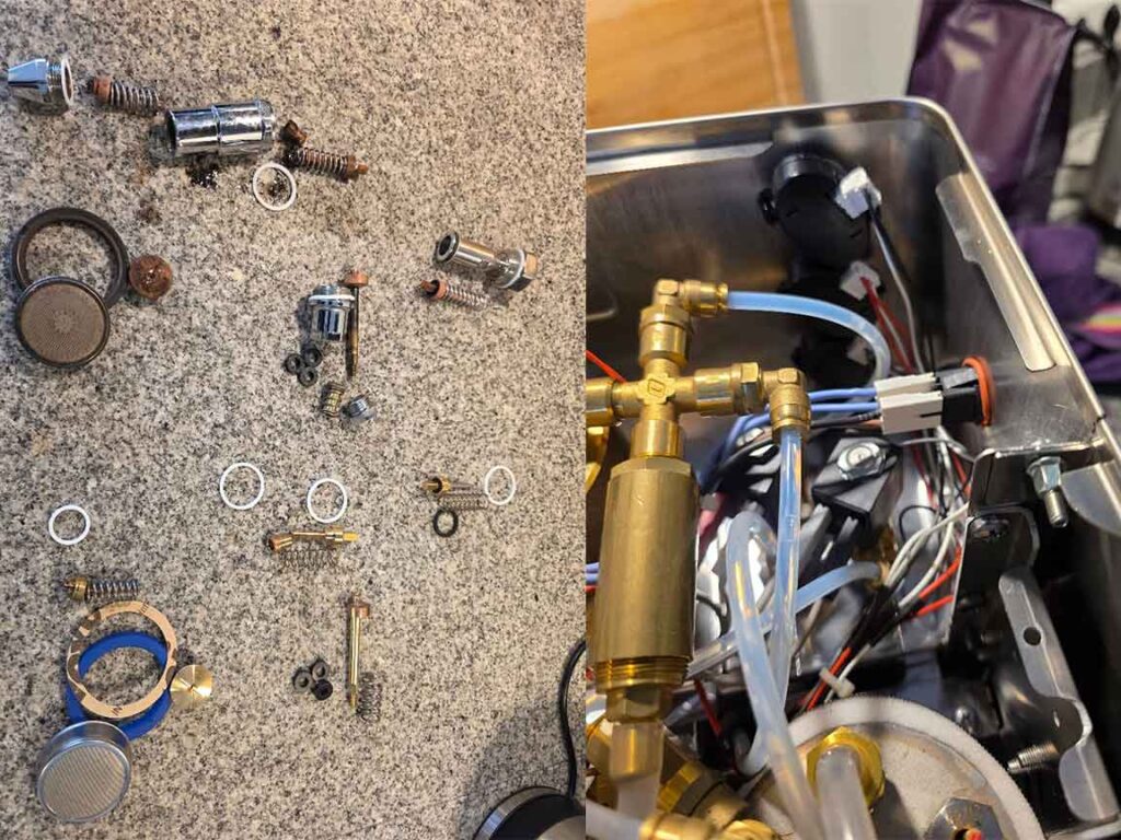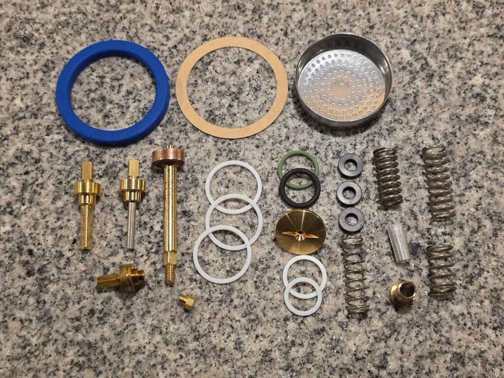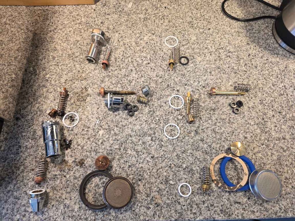 Bij een onderhoudsbeurt voor een ECM ga ik veel verder dan alleen een reiniging. De complete zetgroep wordt gedemonteerd, diep gereinigd en voorzien van een indrukwekkende lijst aan nieuwe onderdelen. Dit is een arbeidsintensief proces waarbij we alle kritieke slijtagegevoelige punten aanpakken. Hiermee voorkomen we lekkages en drukverlies, zodat uw machine weer presteert als nieuw.